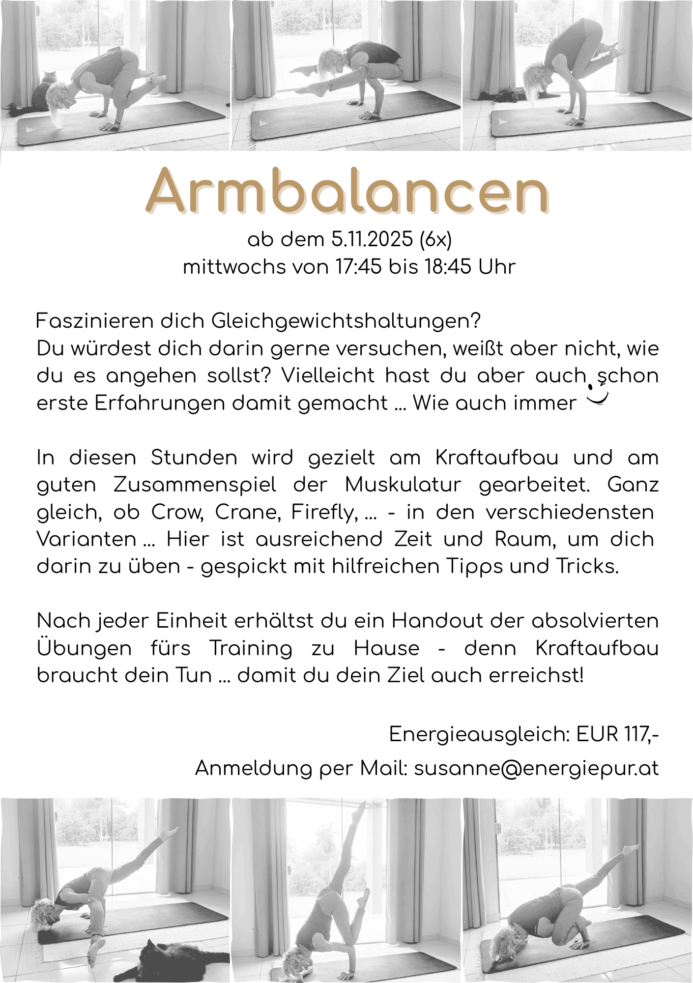 Armbalancen - Gleichgewichtshaltung, Kraftaufbau, ... 6 Einheiten |
