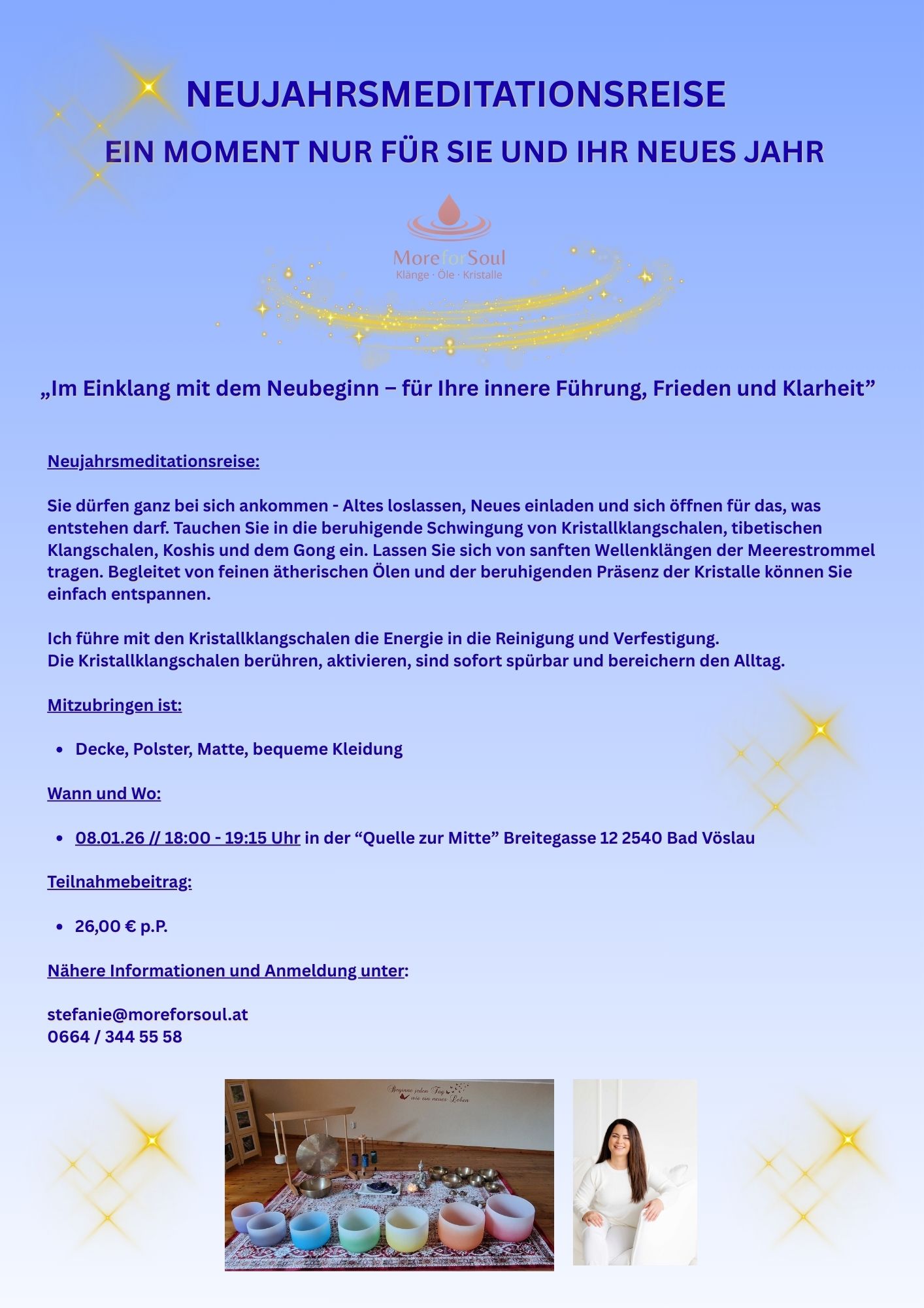 Neujahrsmeditationsreise mit Kristallklangschalen, Meerestrommel, Gong, Koshi´s, uvm. |